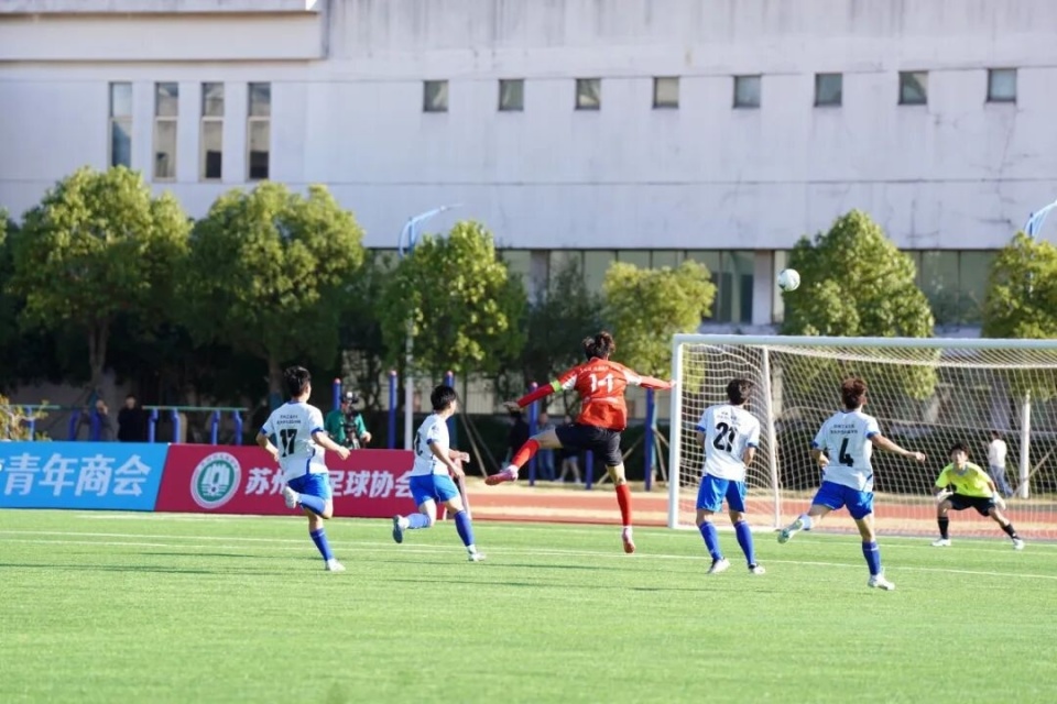 然而苏州工业园区服务外包职业学院并未慌乱,他们迅速组织反击,并凭借一次点球机会将比分扳为1:1平。此后双方陷入激烈的中场缠斗,攻防转换令人目不暇接。上半场结束前,苏州健雄职业技术学院球员接队友妙传,以一记漂亮的射门洞穿对方球门,将比分再度超出至2:1!